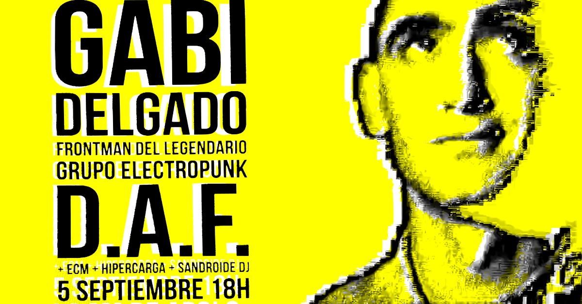 El Frente Sónico Futurista ha organizado este conciertazo de Gabi Delgado-López (D.A.F, Delkom...) para el sábado 5 de septiembre de 2015 en la 2 del Apolo. Es la primera vez que actúa en Barcelona. Nuestros amigos ECM e Hipercarga también estarán y Sandroide será la dj oficial. Qbits hará una pequeña intervención con el cuerpo de baile. No te lo vayas a perder.
